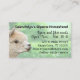 Alpaca business cards. Cute white alpaca face design with green grass background. Customize black text in three places. Include the business name, shop address, contact, and other information as needed. Reverse is solid, pale green.