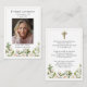 An elegant memorial photo funeral memorial prayer cards featuring elegant white roses. You can customize with your chosen prayer, psalm or poem. Elegant border of roses on simple white background. Makes great keepsake.