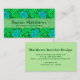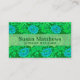 Carte de visite dans un vintage William Morris, Art Nouveau, imprimé floral de chrysanthèmes stylisés, numériquement rehaussé et coloré, en vert citron clair et profond et aqua, sur un arrière - plan vert émeraude