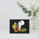 Un loup hurle à la pleine lune avec des feuilles et des glands d'automne sur fond de noir