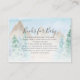 Watercolor painted forest and mountains with rustic woodland animals camping on a Books for Baby enclosure card. Encourage your guests to bring books and a personal message to start your new baby boy's love of reading. Art painted by internationally licensed artist and designer, copyright Audrey Jeanne Roberts.