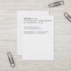 Carte de visite, taille : États-Unis : 8.9 cm x 5.1 cm, papier : Standard Semi-brillant, coins : Carré