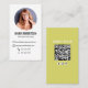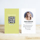 Make a bright impression with this modern yellow photo business card featuring a scannable QR code for instant access to your business website or social media profiles. Designed with a professional and minimalist layout, it showcases your photo and company contact details in a clean, stylish way. Perfect for professionals who want a fresh, modern design that connects effortlessly.