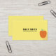 Red apple in lower right corner on this yellow background business card. Customizable name and title on front and all business information on back.