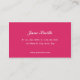 Carte De Visite Zebra Print Fashion Pink Chaud Elegant Modern Clas