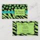 Carte De Visite Zèbre noir, Turquoise et vert & Cheetah Skin perso