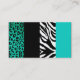 Carte De Visite Zèbre turquoise et léopard bleus et noirs de