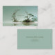 Define your brand with unmatched tranquility and ethereal beauty using this captivating business card. The design centers on a breathtaking, Asian-inspired waterscape, where misty, minimalist mountains frame a hazy, pale sage green sky. The foreground is dominated by a still, reflective lake or body of water. The key feature is a graceful, crescent-shaped arch of vines and pale pink flowers rising from a small island of foliage and bonsai-style trees in the water, creating a natural frame for your text. The expansive water and sky emphasize quiet solitude and space for your branding. This artwork beautifully captures the quiet solitude of a hidden Zen garden, resulting in a unique and sophisticated brand statement that conveys peace and natural elegance. This business card is ideally suited for a spiritual advisor or wellness coach emphasizing calm and nature, a boutique travel agency promoting Asian-inspired scenic retreats, or a fine art print seller specializing in serene, atmospheric works. It would also perfectly suit a landscape architect whose focus is on peaceful, artistic garden designs, or a tea room proprietor looking to convey a refined, peaceful experience.