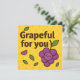 Dites merci de la façon la plus douce avec cette carte "Grapeful for You"! Avec d'adorables raisins souriants sur un arrière - plan jaune vif, ce joyeux jeu de fruits est parfait pour exprimer la gratitude à des amis, à la famille, aux collègues ou à toute personne qui mérite un sourire. Idéal pour des notes de remerciement, des cadeaux d'appréciation ou des moments juste-parce que.