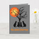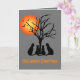 C'est l'heure de s'amuser Halloween, avec ces chats. La pleine lune à l'arrière-plan brille sur la silhouette d'un arbre, avec quatre chats. Le message en bas indique "JOYEUX HALLOWEEN". Vous pouvez ajouter votre propre message à l'intérieur.