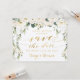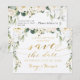 Cartes postales de date fixe de mariage rustique de pivoines blanches et de verdure argentée.