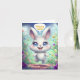 Célébrez Pâques avec cette charmante carte de vœux, mettant en vedette un adorable lapin duveteux sautant joyeusement à travers une prairie colorée remplie de fleurs et entourée d'œufs de Pâques ! 🌸🐰💐 Ce design charmant est parfait pour répandre la joie de Pâques à la famille, aux amis et aux proches.
