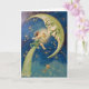 Donnez à quelqu'un que vous aimez cette belle carte vintage pour Noël. Un petit ange à cheval sur une comète tenant une lanterne brillante pour éclairer son chemin à travers le cosmos étoilé rencontre face à face avec la lune. Customisez cette carte si vous le souhaitez avec votre propre message.