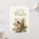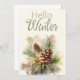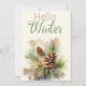 Bonjour l'hiver. Carte de voeux aquarelle avec branches de pin, cônes et baies.