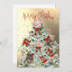 Carte de vœux arbre de Noël fleurs sauvages or rou