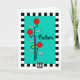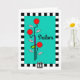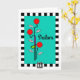 Le rouge brillant dans les rayures noir et blanc des fleurs Art nouveau contraste de façon saisissante avec l'arrière - plan turquoise vif et est entouré de feuilles de bufflonne. La carte intérieure a une zone de date et des bordures et est ornée du même motif floral pour votre plaisir d'écriture. Shalom ! ~ karyn