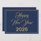 Célébrez la saison avec cette élégante carte de vœux professionnelle de Nouvel An 2026 bleue et dorée - parfaite pour envoyer des vœux chaleureux à vos clients, collègues et partenaires. Avec son fond marine sophistiqué et sa typographie dorée luxueuse, cette carte de vœux professionnelle de Nouvel An est idéale pour renforcer les relations d'affaires tout en partageant la joie festive. Personnalisez-la avec le nom et le logo de votre entreprise pour créer une carte de vœux professionnelle personnalisée et élégante qui laisse une impression durable. Un design élégant et intemporel pour les entreprises, les bureaux et les organisations qui souhaitent envoyer des vœux de Nouvel An attentionnés.