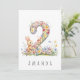 Rendez le 2e anniversaire d'un tout-petit encore plus spécial avec cette charmante carte, qui présente une délicate illustration à l'aquarelle du chiffre 2, magnifiquement réalisée à partir de minuscules fleurs pastel colorées. Un adorable lapin se tient debout à côté du chiffre, grignotant joyeusement les fleurs, ce qui ajoute une touche de douceur et de joie au design. Que vous soyez parent, grand-parent ou ami de la famille, cette carte enchanteresse est sûre de faire sourire le petit et ses proches.