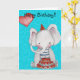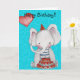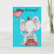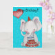 Une belle carte pour souhaiter un "Joyeux anniversaire" à un enfant - De ma peinture originale aquarelle sur papier un bébé éléphant avec un ballon en forme de coeur et un merveilleux gâteau d'anniversaire sur un arrière - plan bleu décoré de coeurs. Customisez le texte et les polices et faites-le merveilleux! !