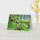 Une carte de voeux vierge avec un mignon écureuil gris assis sur une vigne aux feuilles vertes. C'est une photo nature mignonne.