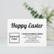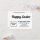 Carte de voeux blanche à plat pour Pâques que vous pouvez customiser en téléchargeant votre logo d'entreprise, en tapant votre nom d'entreprise, adresse, numéro de téléphone et site Web. Customisez-le et donnez-le à vos clients ou clients pour les saluer cette Pâques. Carte de voeux plate comme matériel de marketing aussi pour annoncer votre entreprise ou pour promouvoir votre marque. Carte de voeux personnalisable que vous pouvez utiliser pour sensibiliser la marque. Veuillez vérifier l'apparence des côtés avant et arrière après avoir téléchargé le logo et tapé des textes. Si l'apparence vous plaît, vous pouvez passer votre commande maintenant. Si vous avez besoin de redimensionner et repositionner le logo et les textes pour les mettre sur cette carte ou sur la taille que vous avez choisie, s'il vous plaît ajuster dans l'outil de conception. Vous pouvez également modifier la couleur arrière - plan, la couleur de police et le style de police dans l'outil de conception. Joyeux Pâques ! Je vous souhaite plus de ventes ce jour férié.