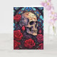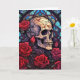 Un magnifique crâne et des roses rouges sont présentés devant un magnifique vitrail sur cette belle carte de voeux de 5" x 7". Entièrement personnalisable ici sur Zazzle, ou commander en blanc, et écrire votre propre message personnel à la maison. Vous trouverez des t-shirts, du sac fourre-tout, du café, des tasses et du papier d'emballage au magasin Stems and Stones Zazzle. Créez un forfait cadeau de coordination pour quelqu'un de spécial.