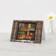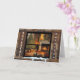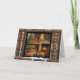 En regardant par une fenêtre gelée, nous voyons une scène chaleureuse de Yuletide. Personnalisez l'intérieur avec votre propre salutation pour envoyer des voeux pour un solstice d'hiver béni.