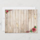 La carte de Noël rustique présente Joyeux Noël, écrit dans une jolie police cursive et une typographie simple en noir et rouge. Remplacez par votre photo préférée en haut et en bas de la carte est une planche de grange usée et patinée avec une gerbe de poinsettia dans le coin. Personnalisez-la avec vos noms et la date. Le verso de la carte est la planche de grange patinée et comporte des poinsettias dans deux coins opposés.