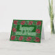 "Happy Solstice" en vieilles lettres celtiques, entourée de nouages celtiques rouges et verts. L'intérieur est vide et prêt pour votre propre salutation.