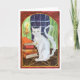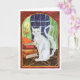 Envoyez des vœux effrayants avec cette carte unique ! La carte présente une illustration d'un chat magique perché à côté d'une pile de livres et d'une bougie, avec une "nuit sombre et orageuse" visible à travers la fenêtre derrière. Idéal pour les vœux d'Halloween, les invitations à une fête d'Halloween ou simplement pour envoyer un mot magique à un ami.