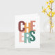 Carte de vœux colorée pâle avec les lettres épelant "cheers!". L'intérieur peut être personnalisé ou laissé vide.