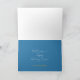Cette carte de vœux Chrismukkah présente les mots "Joyeux Chrismukkah" comme point central en or sur fond bleu. L'étoile de David, un sapin de Noël et une menorah mettent en valeur chacune des fêtes. C'est un excellent design pour envoyer des vœux de fêtes interconfessionnels à vos amis et à votre famille. Copyright Kathy Henis