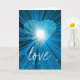 Design moderne avec un cœur bleu et blanc brillant et scintillant sur un fond bleu, blanc et noir lumineux. Carte de vœux avec un design personnalisable bleu, noir et blanc pour que vous puissiez le personnaliser avec votre propre texte, images et idées. Le texte peut être facilement modifié à l'aide du modèle fourni ou cliquez sur le bouton 'Personnaliser' pour apporter d'autres modifications. Créé par Jess Perry à l'aide de photographies originales et de techniques numériques.