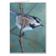 Une petite poule de montagne joyeuse perche sur une brindille sur cette image d'art raffiné d'une peinture à l'huile originale de l'artiste primée Debra Mickelson. Les couleurs dominantes de ce tableau sont le bleu, le vert et le marron. L'intérieur est laissé vide pour votre propre message.
