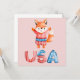 Cute patriotique carré plat accueil avec renard aquarelle habillé en tenue patriotique avec étoiles et rayures "USA"