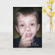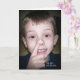 Carte de voeux d'ami avec le garçon sélectionnant son nez