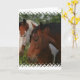 Peinture et cheval de baie caressant vers le haut de la carte de voeux.