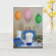 Carte d'anniversaire de collègue avec le gâteau de boîte de tissu et les bougies et les ballons de crayon