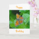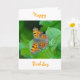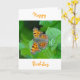 Petit papillon orange assis sur des feuilles verts, orange Texte : "Joyeux anniversaire"