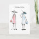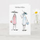 Une photographie d'une peinture originale au stylo et à l'aquarelle de l'artiste anglais Terry Donnelly "Dames en route pour le déjeuner", deux dames sophistiquées partant faire du shopping/déjeuner/aux courses de la série Vintage