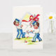 Carte de voeux d'anniversaire rétro / Vintage. Livraison spéciale pour Anniversaire ou toute occasion spéciale ! Deux adorables courriers qui livrent une grande enveloppe pleine de fleurs !