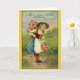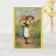 Carte de voeux d'anniversaire rétro / Vintage. Jolie jeune fille de campagne avec un panier et un bouquet de roses! Beaucoup De Joyeux Retour Du Jour !