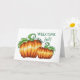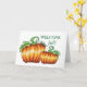 Carte colorée parfaite pour envoyer des voeux d'automne! La carte présente une illustration classique de deux citrouilles de squat, tous deux d'un orange vif et joyeux avec des tiges bouclés pittoresques. "Chute de bienvenue" est écrit ci-dessus. Vide à l'intérieur.