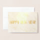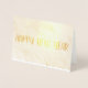 Carte de vœux de bonne année avec message à l'intérieur en texte doré. Les images sont en véritable feuille d'or et vous pouvez les personnaliser ainsi que le texte doré.