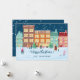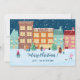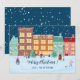 Une carte de vœux plate de vacances charmante avec une illustration de personnes qui se promènent en ville par une veille de Noël enneigée. Personnalisez-la avec vos vœux de vacances et votre signature de famille. Parfait pour être envoyé à n'importe qui. Ce design est également disponible sous forme de carte de vœux régulière.