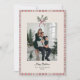 Envoyez des vœux de vacances intemporels avec cette carte de Noël d'inspiration vintage représentant une verdure de gui illustrée à la main et un nœud délicat qui sert de cadre de monogramme et une bordure rayée peinte à la main.