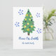 Carte de fêtes de Paix sur Terre. Vous pouvez personnaliser cette carte. Conception aquarelle par Cathy Thompson Art. Sapin vert avec ornements et étoiles.