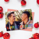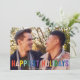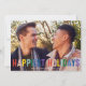 Cette carte de vœux festive et amusante présente une typographie arc-en-ciel sur une photo pleine page. Le message sur le devant dit "Joyeuses Fêtes". Ce design permet d'ajouter une seule photo horizontale sur le devant de la carte. Au verso, vous trouverez un motif festif de bandes diagonales rouges et blanches qui peut être supprimé ou personnalisé. Vous pouvez également ajouter une autre photo ou du texte au verso en sélectionnant "personnaliser davantage le design".