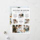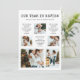 Faites entrer la nouvelle année avec cette unique carte de vœux de fin d'année avec photo de l'année écoulée. Cette carte tendance comprend 'Notre année en revue' dans une police de machine à écrire vintage stylée, 9 photos de famille et un texte au verso pour personnaliser. Texte blanc sur fond noir.