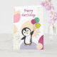 Vœu d'anniversaire Joyeux Anniversaire avec des ballons et un manchot pour l'anniversaire des enfants. Une carte amusante et colorée pour l'anniversaire d'un enfant. Pour les amis qui aiment les manchots.